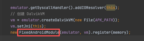 return read(emulator, vm);�AndroidModule类,再修改。这里我选择的是方法 2,这样不会破坏原来的代码,将原来代码中的 AndroidModule 改成 FixedAndroidModule 就可以了