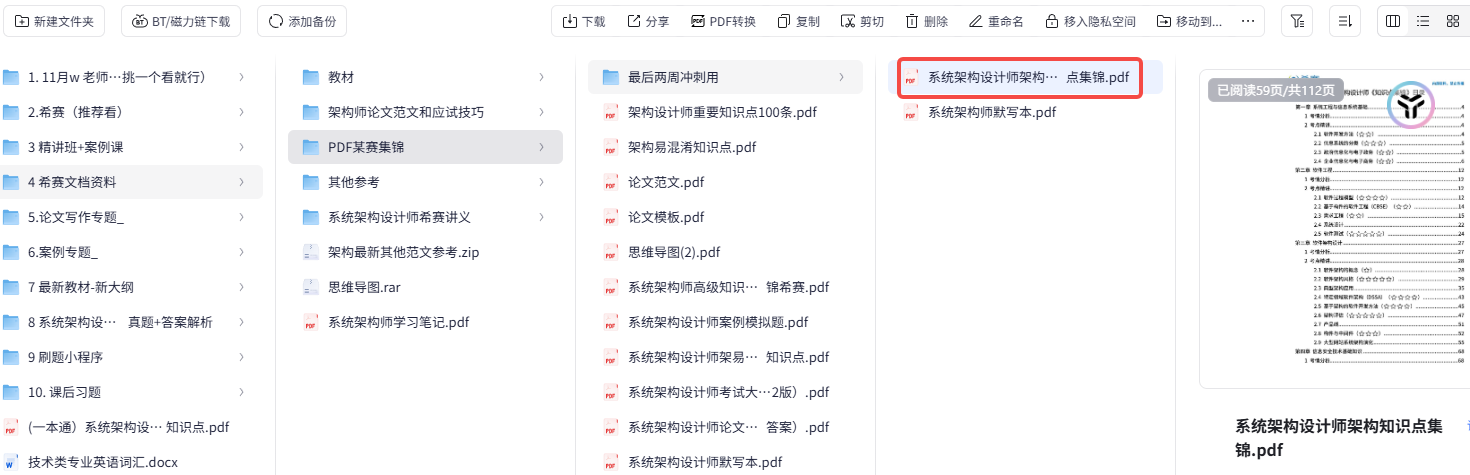 第二阶段:刷题,视频看完后,我是没有立即开始刷题的,我将“系统架构设计师架构知识点集锦”打印了出来,