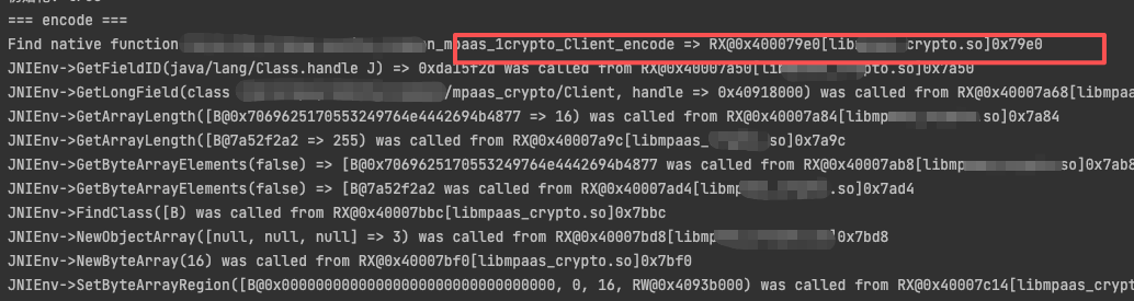 根据 unidbg 模拟执行的日志,可以看这个加密函数的入口地址