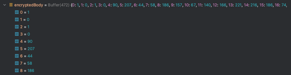 到这里请求里的加密部分算是还原出来了,但是这还不是最终的请求体,最后的请求体是要进过一些长度计算和排列的,这部分可以直接看源码。